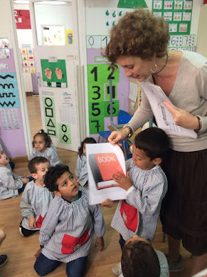 Vam iniciar el tercer trimestre just la setmana de Sant Jordi. Aquella setmana vam gaudir de la llegenda de Sant Jordi, d'una diada molt especial, i també de la visita d'una conta contes professional. Ens va venir a explicar un conte, en anglès, d'un ós que tenia fred i estava brut. Pobre! Ens ho vam passar genial! Mireu quines cares!