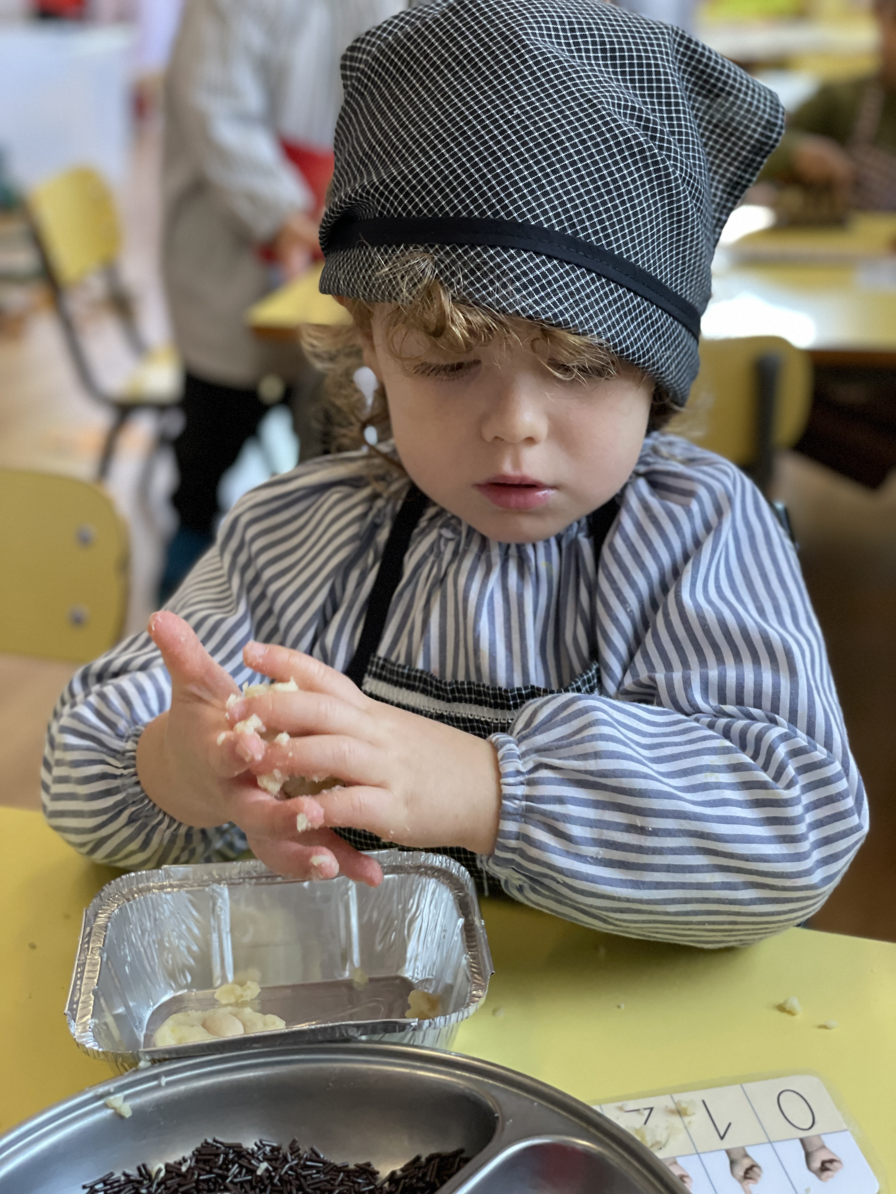 Aquesta setmana hem fet el nostre primer taller de cuina!! Hem fet panellets! hem après a com es fa la msa d'aquests i a donar-lis forma tot solets! Estem fets uns cuiners i cuineres de primera!