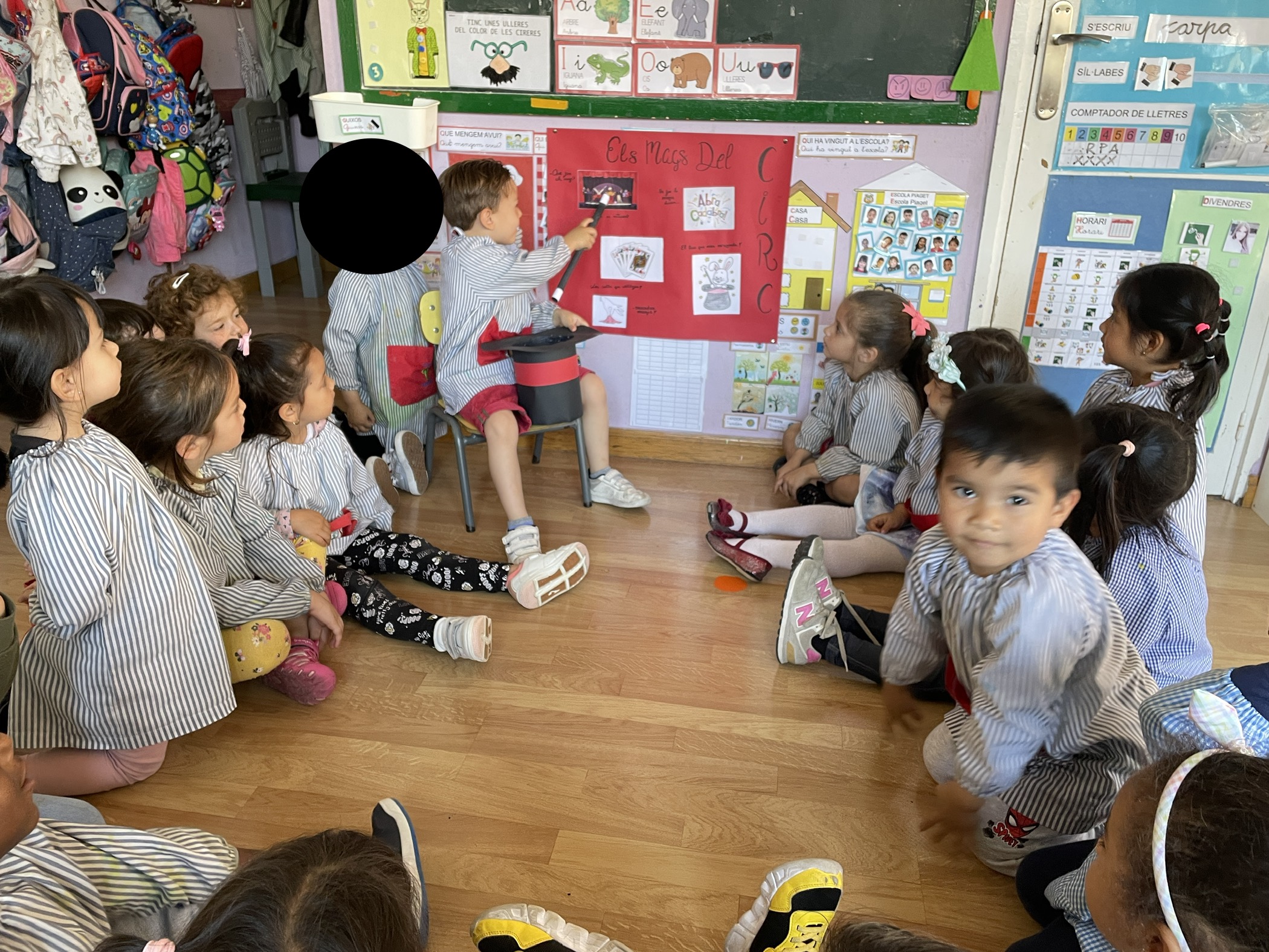 Avui el David ens ha fet màgia. L’hi ha tocat explicar-nos que fan els mags al circ, i ha començat fent-nos màgia amb el seu barret i vareta! Gràcies família!